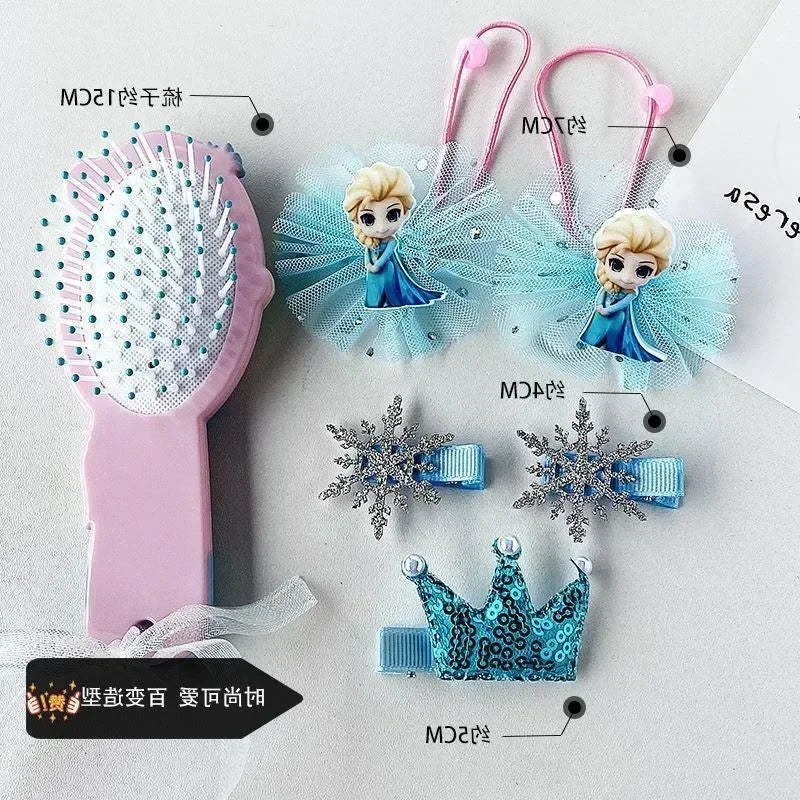 6pcs/set Lovely Frozen Elsa Anna Necklace Bracelet Ring Figure Toys Cute Disney Princess Frozen Accessories Toy Kids Girls Gifts
