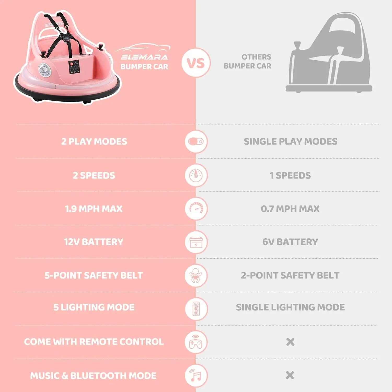 Bumper Car for Kids,1.9mph Max,12V Toddler Ride on Toys with Remote Control,2-Speed,2 Playing Modes,360 Degree Spin,Bump