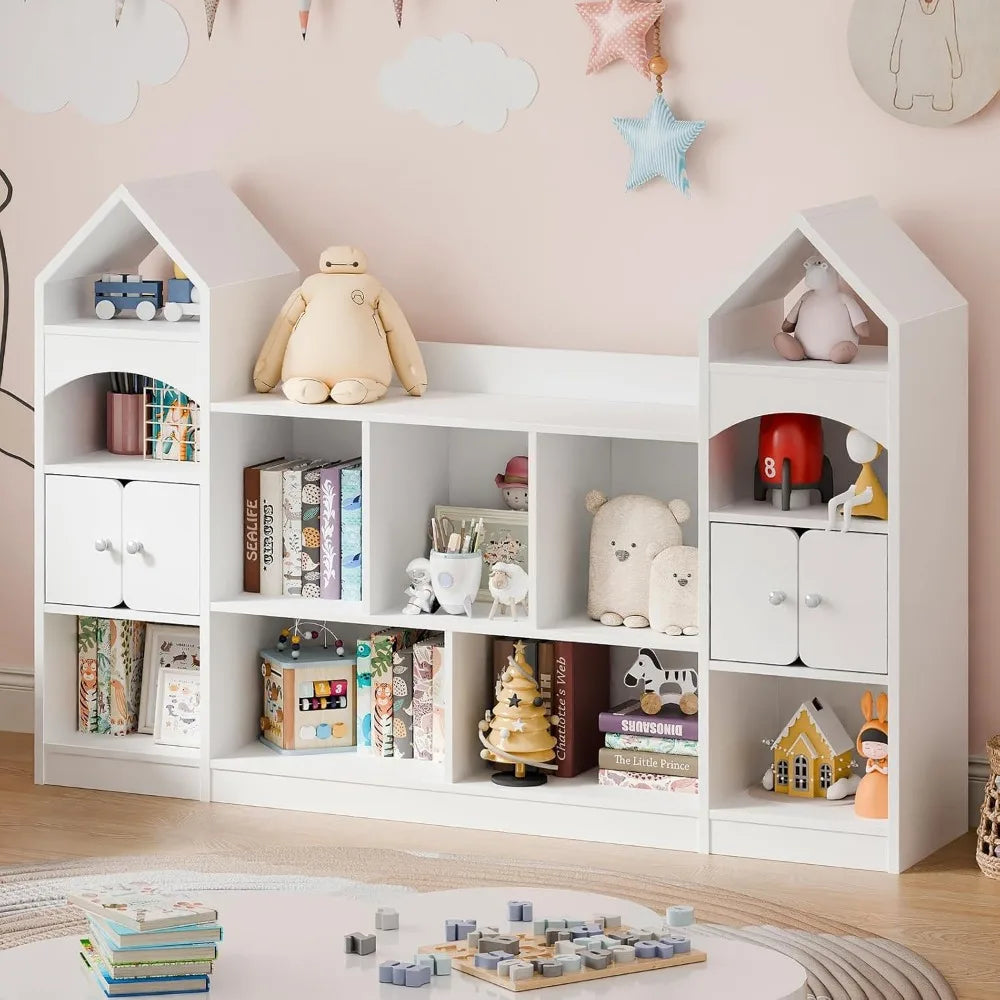 Castle Shape Children's Bookshelf, Kids Bookcase Display Case Kids Toy Storage Organizer Multifunctional Storage Cabinet