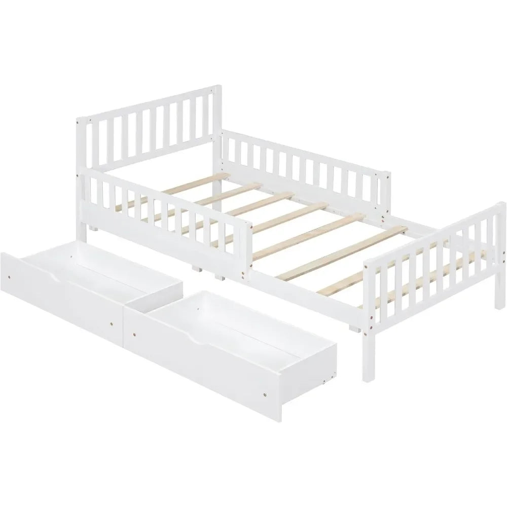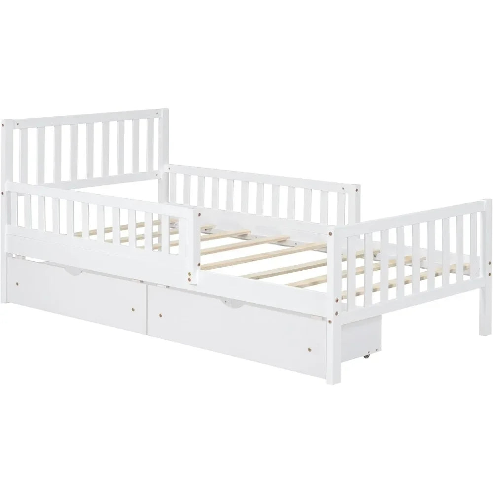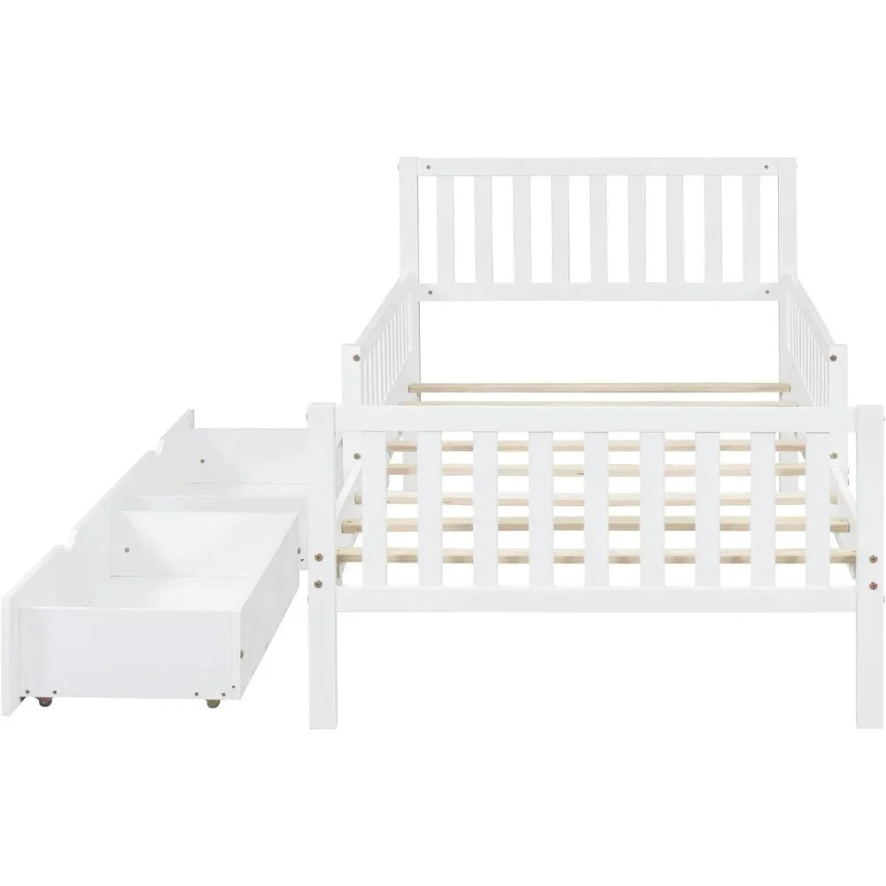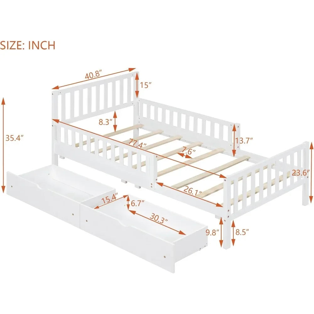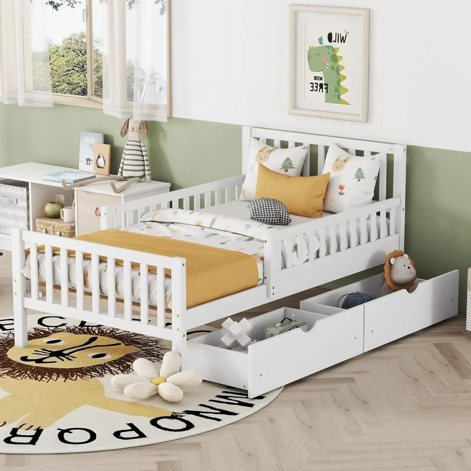 Twin Bed Frame with Storage Drawers and Fence Rails,Wood Platform Beds with Headboard and Slat Support for Kids Boys Girls Teens